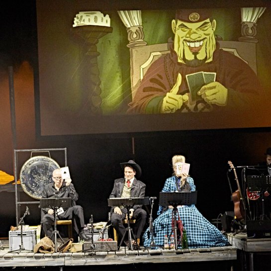 Für das Thalia Theater Hamburg und das Düsseldorfer Schauspielhaus haben wir insgesamt drei Produktionen für ein etwas mehr als 500 Zuschauer fassendes Theaterzelt konzipiert und realisiert.  Die Produktion „Drei Musketiere“ wurde in zwei aufeinanderfolgenden Jahren in der Hafen-City Hamburgs in über 50 Vorstellungen vor ausverkauften Rängen gezeigt.  Bei den Produktionen „In 80 Tagen um die Welt“ und „The Queen’s Men“ in Düsseldorf waren wir sowohl für die Idee, die Autorenschaft und die Inszenierung verantwortlich. Mit den „80 Tagen“ gastierten wir u.a. auch beim Festival „Theater der Welt“ 2017 in Hamburg.