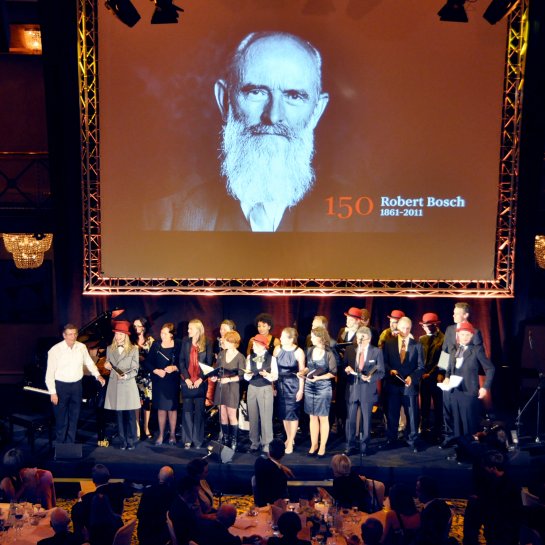 Anlässlich des 150. Geburtstags von Robert Bosch haben wir für die Robert-Bosch-Stiftung einen Abend mit Dinner in der Alten Reithalle vor 500 geladenen Gästen aus Industrie und Politik ausgerichtet. Neben zahlreichen Redebeiträgen, u.a. von Kanzlerin Angela Merkel, gab es szenische Intermezzi zum Leben des Stiftungsgebers, eine live produzierten Filmcollage vom Abend selber und viel Musik.